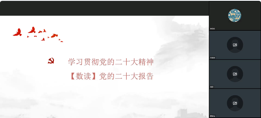 机关党支部书记、党政办主任宋湘琴同志作学习贯彻党的二十大精神专题宣讲。宋湘琴从“方位和主题、现实基础、理论指导、使命任务、战略部署”五个方面带领全体党员学习研读党的二十大报告,认真领悟党的二十大提出的新思想新论断、作出的新部署新要求;同时提出机关党支部要在组织学习、开展交流、推动落实等方面发挥带头作用,最大程度调动党员的积极性和主观能动性,对标对表党的二十大新要求,聚焦重点工作,促进党建和业务工作相互融合,不断提升学习贯彻党的二十大精神实际效果。