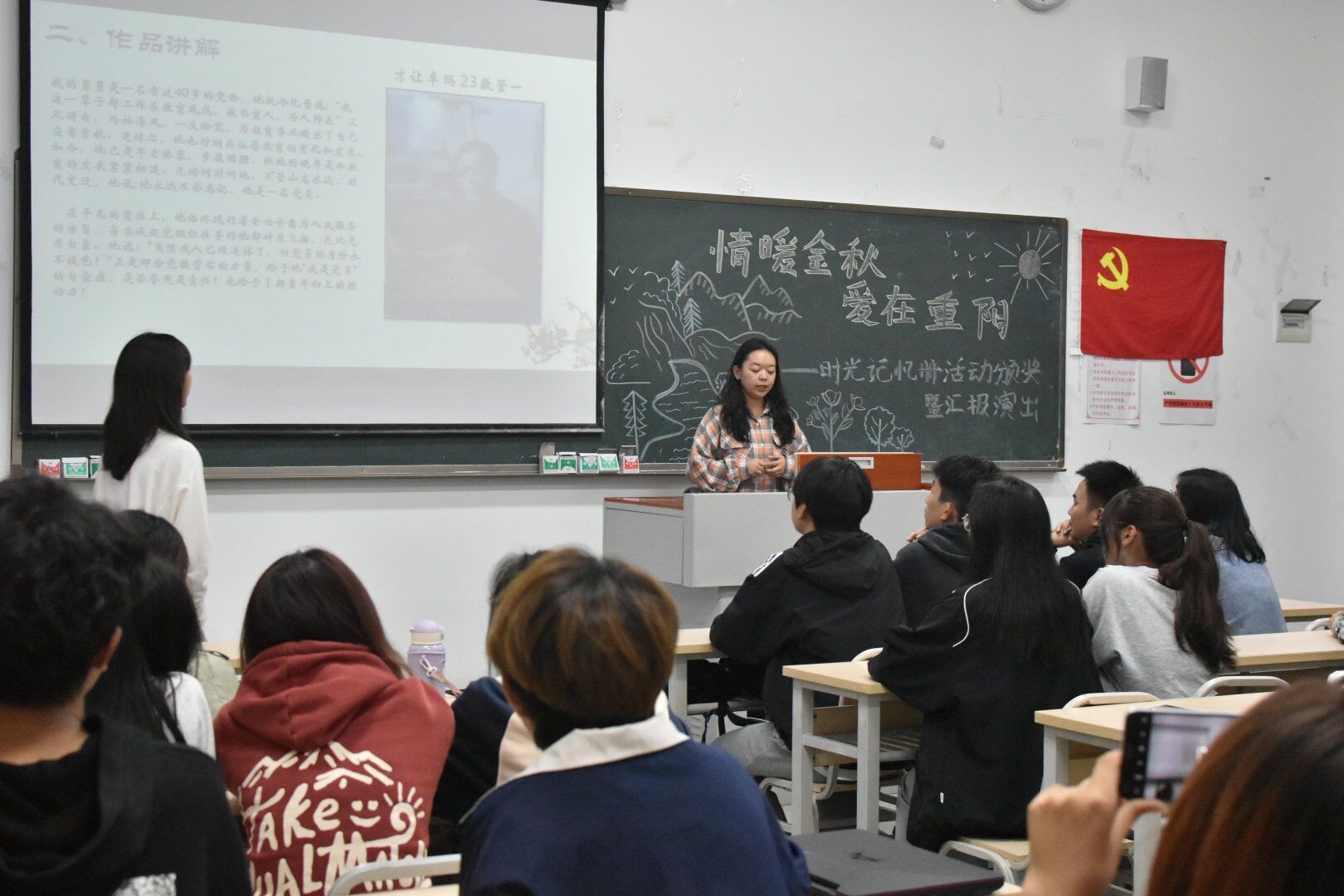 本次活动采取线上线下的方式开展,由学生自行选取身边老党员的照片并讲述这张照片背后令人动容的故事。学生们在追寻红色足迹中,增加对党的认识,传承红色基因,培养和传承革命精神。