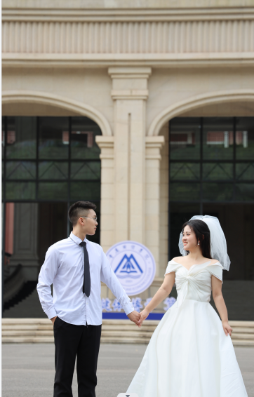 10月21日,我校2016级工程管理专业毕业生陈思蓓与韩玉波重返重财校园拍摄婚纱照,一时间,这对身穿婚纱礼服的“新人”成为了校园里一道亮丽的风景线。
