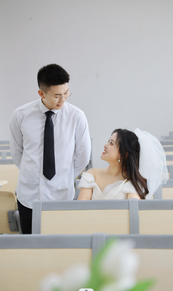 据了解,两位新婚夫妇曾是我校学子,认为学校是其感情的发源地,从校服到婚纱,从过去的青春懵懂到现在的风华正茂都充满着纪念意义。在教室里一同看书,在体育场牵手奔跑,在图书馆门前留影,陈思蓓激动地说:“再忙也要回来看看,因为重财是我们的家!”看到校园发生的变化,思蓓校友不禁感慨:“母校建设得越来越好,希望学弟学妹们好好珍惜在校园里的时光,抓住机会锻炼提升自己的能力,认真学习,累积的知识会成为以后工作上的垫脚石。面对就业,希望学弟学妹能选择自己喜欢的工作,并坚持认真的走下去。”怀着对学校的热爱和深深的眷恋,两位校友在校园里经历了人生最美好的时刻,在这充满美好回忆的地方拍下了有特殊纪念意义的婚纱照,体现了其对母校的深厚感情,更充满了对未来生活的美好憧憬与期待。