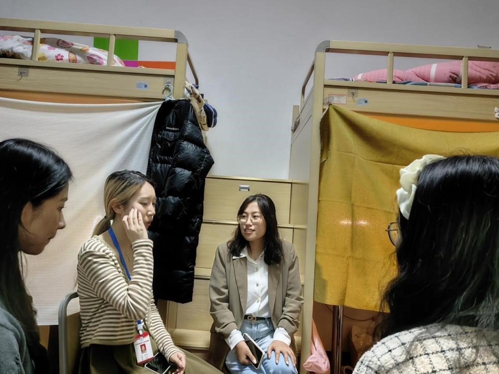 课堂下,学院学生党支部书记王春凤深入走访新生寝室,了解新生们对主题活动的感悟和近期学习生活状态,为同学们答疑解惑,勉励大家要以更高标准、更高目标要求自己,珍惜时光,规划好大学生活。