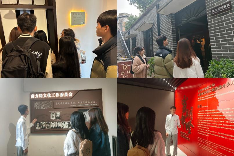 踏寻红色足迹,感悟红岩精神。学生党支部党员、积极分子、共青团员等12人前往中山四路,寻访红色足迹。在参观途中,党员讲解员分别在新华日报营业部旧址、桂园重庆谈判旧址、周公馆旧址、曾家岩书院等地为同学们进行详细讲解。