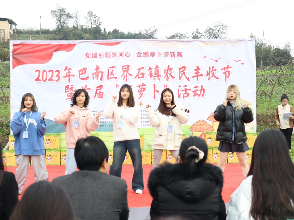 活动现场,会计学院闫诗涵同学通过独唱《微微》为活动暖场;任玉婷、钱文静、邓元、谷琦、熊梓岐五位同学带来的舞蹈串烧为现场注入青春新活力。同时,学院红云“会”播电商直播队,通过抖音直播的方式对本次活动进行全面宣传,为特色农产品的推广注入新活力,进一步推动乡村振兴发展。