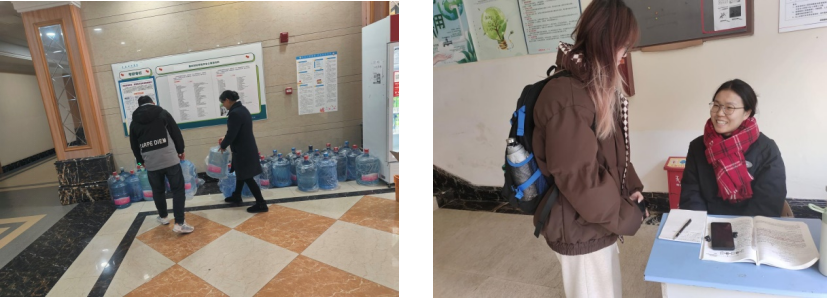 成小丽同志表示:“这份工作是辛苦的,我们需要每天及时到达岗位,协助园区辅导员开展公寓工作,了解楼栋同学的需求和问题,天气还有些冷。但是我很开心,能够为他人服务,这点让我感到非常自豪,也让我觉得很踏实”。黄彬同志表示:“在我入校时学长学姐们热情地帮助我们,让我们体会到了家的温暖,现在我们也要尽全力为学弟学妹们守护”。