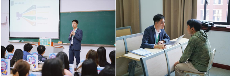 升学多方来帮扶。针对升学意向学生,公共管理学院联合心理中心和国交处开展系列帮扶行动。在考研心理辅导中,王慧老师通过互动游戏启发引导学生分享压力、感受压力、评估压力、认识压力,帮助同学们缓解备考压力,重拾考研信心。在出国留学座谈会上,李慧老师通过分享出国留学经验,介绍学校留学和实习项目,为同学们的升学道路选择开拓了国际视野。