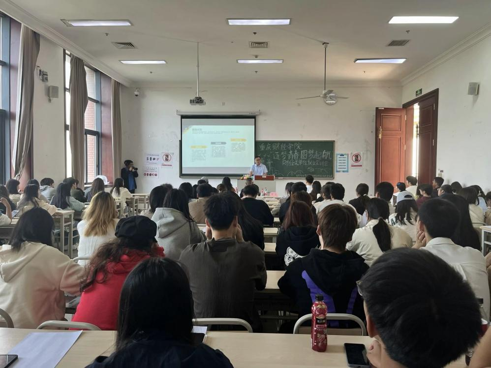 为贯彻落实习近平总书记关于做好高校毕业生就业工作的重要指示精神,以争创“全国党支部”为重要驱动点,积极探索构建“党建+就业”深度融合机制,实现党建引领高质量就业工作落实成效。10月23日上午,我校财富管理学院在教学楼1412教室开展了“逐梦青春,圆梦起航”财经类单位就业宣讲会。出席此次会议的嘉宾有:中税网天运税务事务所有限公司项目经理官中明、立信会计师事务所重庆分所人力资源经理秦予晋、重庆合复科技有限公司创始人傅文祥、重庆钰哲财税集团有限公司负责人汪玲,以及财富管理学院党总支书记宋钰静、院长助理廉然、学团办主任陈晨。