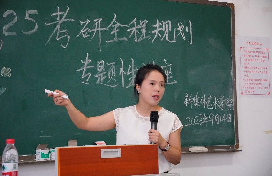 为帮助2025届学生了解考研形势,提高考研积极性、增强考研信心、激发考研斗志,同时更加深入了解学科专业状况,9月14日,我校新媒体艺术学院在教学楼1405教室开展了考研专题讲座。专业指导黄老师应邀开展考研全程规划专题讲座,学院年级组长封雨洁以及2021级100余名学生参加学习。
