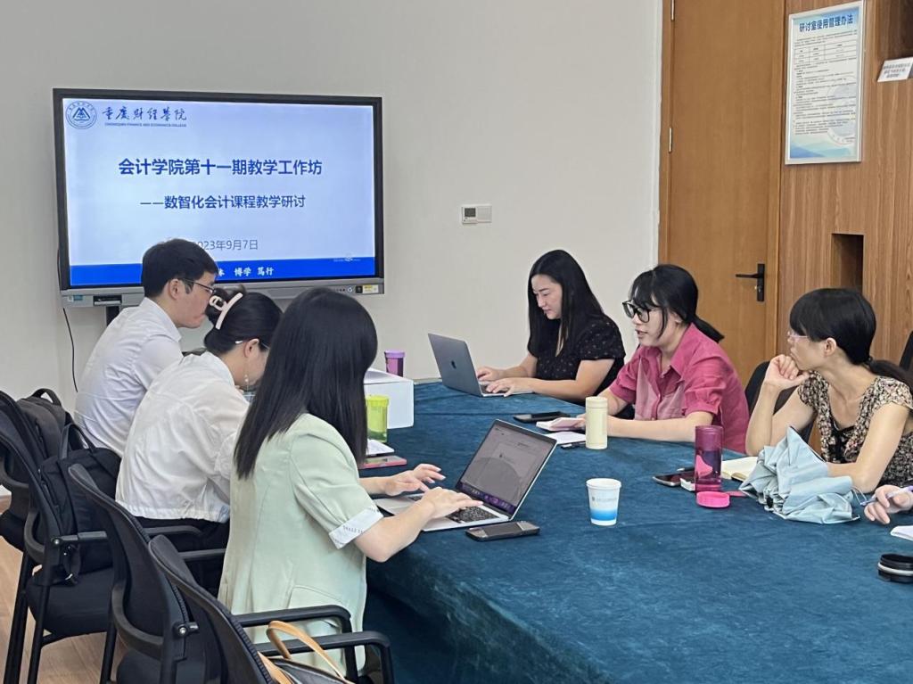 为促进行业前沿新技术融入高校、融入教学,加快我校智能会计产业学院人才培养进程,9月7日上午,我校会计学院十一期教学工作坊暨数智化会计课程教学研讨在图书馆研讨室顺利召开,会计学院院长李倩、副院长王婧婧、助理杨瑞丽、新道驻校导师朱小芳及李爽等10余名教师代表参与了此次会议。本次活动特别邀请新道科技股份有限公司教育服务事业部讲师肖宏伟和重庆分公司教学服务总监李志良作分享交流。会议由王婧婧副院长主持。