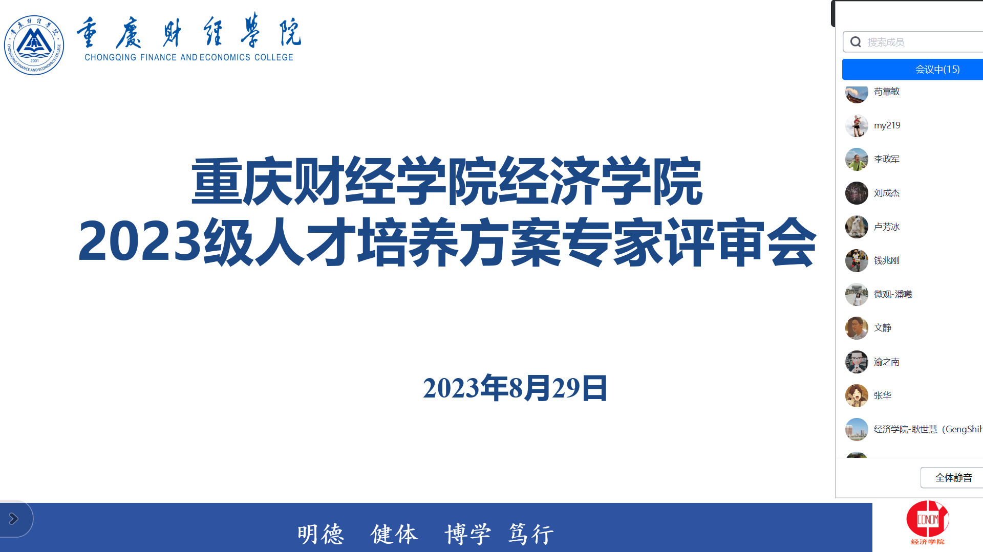 为落实学校“十四五”教育事业发展规划部署,构建践行一流、特色鲜明的应用型本科人才培养体系,进一步做好人才培养顶层设计,推动教育高质量发展。8月29日上午,我校经济学院通过腾讯会议召开2023级人才培养方案专家评审会。本次会议邀请了重庆工商大学经济学院、我校经济学院院长、学术带头人刘成杰教授,南京师范大学商学院、靠谱的电子游戏官网经济学教学团队首席教授李政军,重庆市进出口商会执行会长钱兆刚,三位专家对经济学院2023级五个专业的人才培养方案进行评审,校长吴华安教授、经济学院副院长李红平,经济学院院长助理刘春兰,以及经济学系、经济统计系、经济贸易系五个专业负责人和部分教师代表出席会议,会议由经济学院院长助理刘春兰主持。