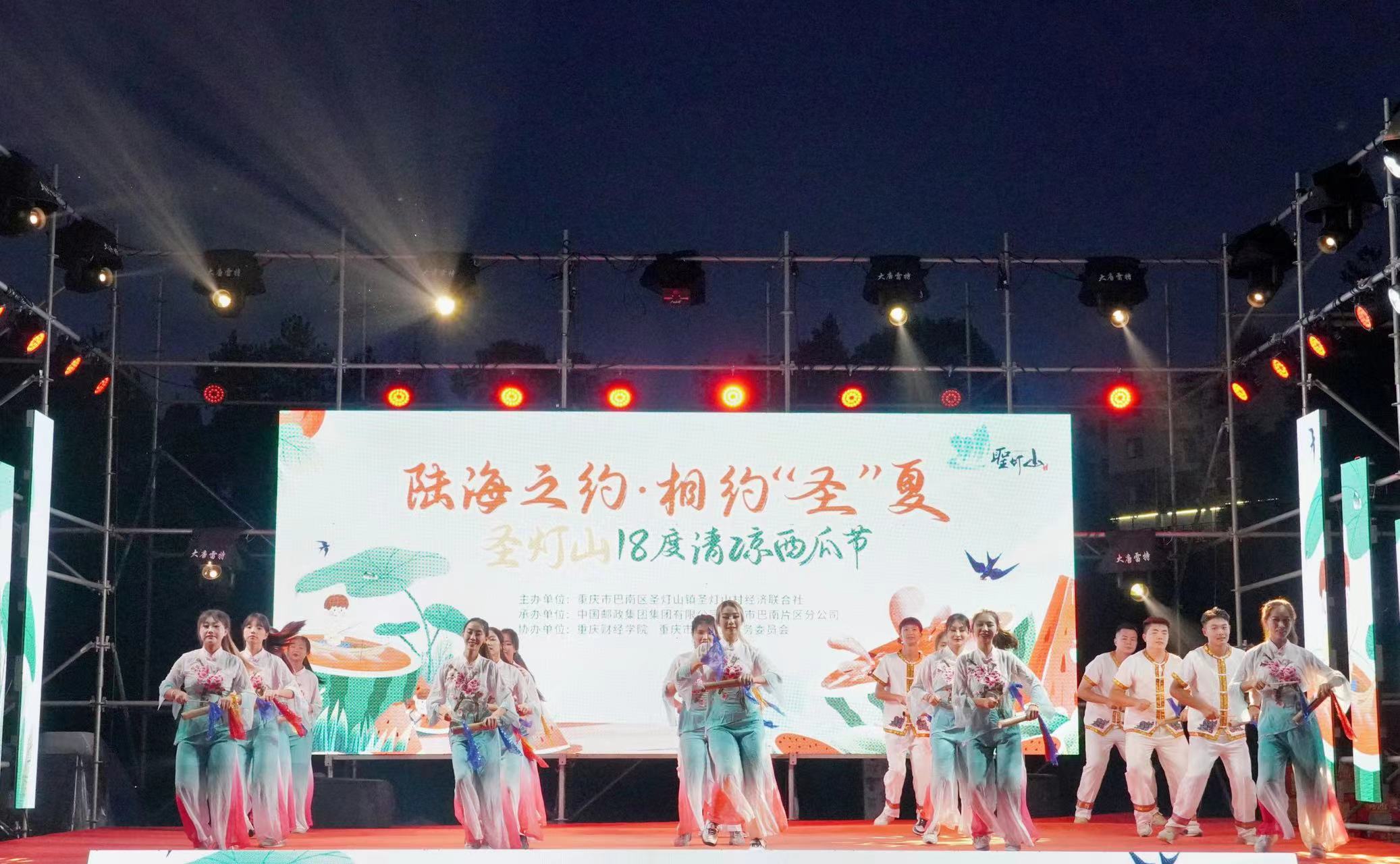 在晚会活动中,播音与主持艺术专业同学出色主持,台上节目精彩纷呈,台下掌声雷动。非遗梆鼓舞、歌曲串烧、流行舞等节目在全场近万人观众的欢呼声中迎来一波又一波高潮。同时,网络与新媒体专业同学还对活动进行了网络直播,在线上云端也收获了无数观众和点赞,其中圣灯山避暑候鸟人员代表李老师说到,“重财学子真是多才多艺,感谢为我们带来如此高质量的节目,极大丰富了我们的文化生活。”