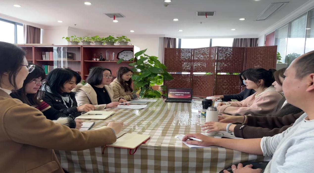 为持续深入学习贯彻习近平新时代中国特色社会主义思想,巩固拓展主题教育成果,3月13日,我校国际商学院在行政楼2310办公室开展了2023-2024学年第二学期3月专题学习会暨党组织生活会。会议由党总支副书记陈晴同志主持,院长黄兰同志及学院全体党员教师参加。