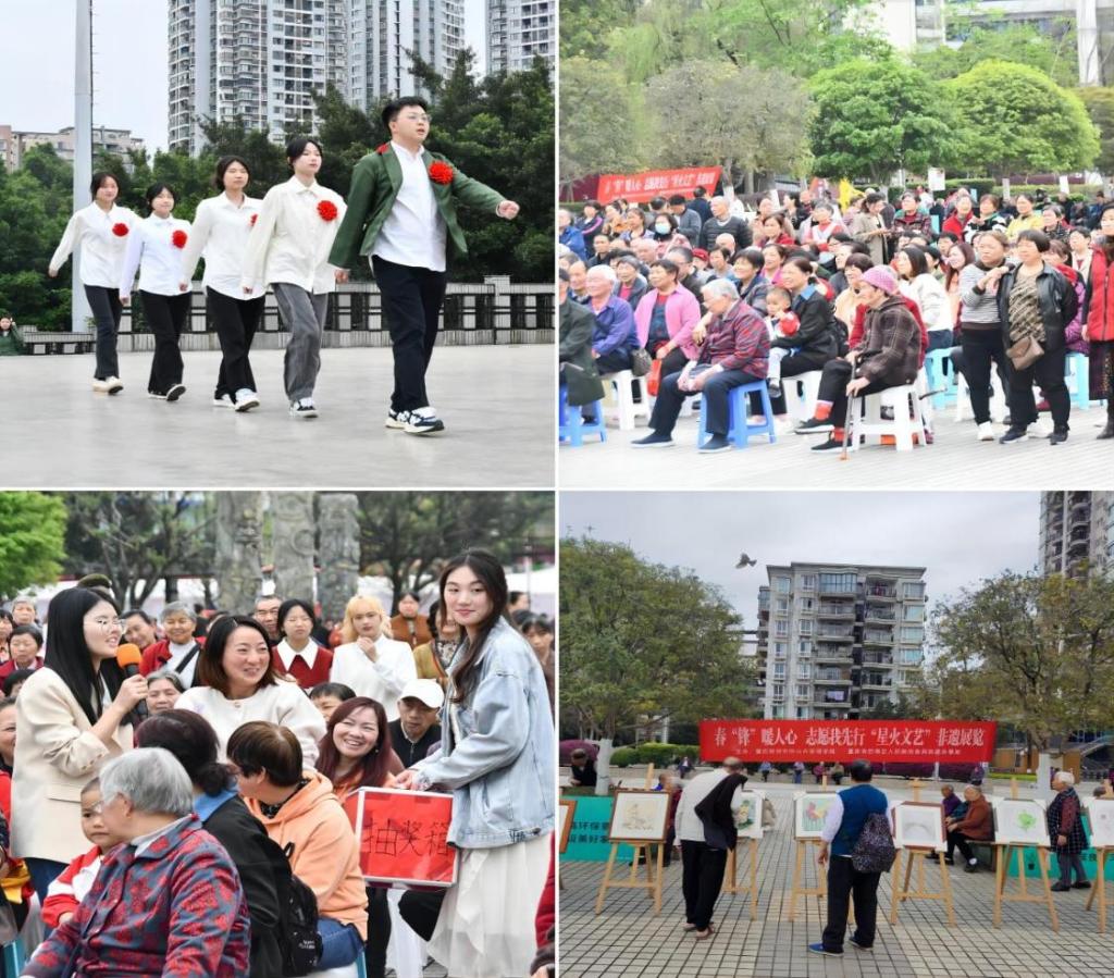 习近平总书记指出,“志愿服务是社会文明进步的重要标志,是广大志愿者奉献爱心的重要渠道。”为鼓励广大青年学习传承雷锋精神,培育和践行社会主义核心价值观。3月26日,我校公共管理学院与重庆市巴南区人民政府鱼洞街道办事处在巴南区鱼洞街道人民广场开展了“春‘锋’暖人心,志愿我先行”星火文艺系列活动。公共管理学院党总支书记罗婷婷书记、巴南区鱼洞街道宣传统战委员李光英及鱼洞街道综合文化服务中心主任朱雪莲出席活动,100余名学院学生参与,吸引300余名社区居民观摩。