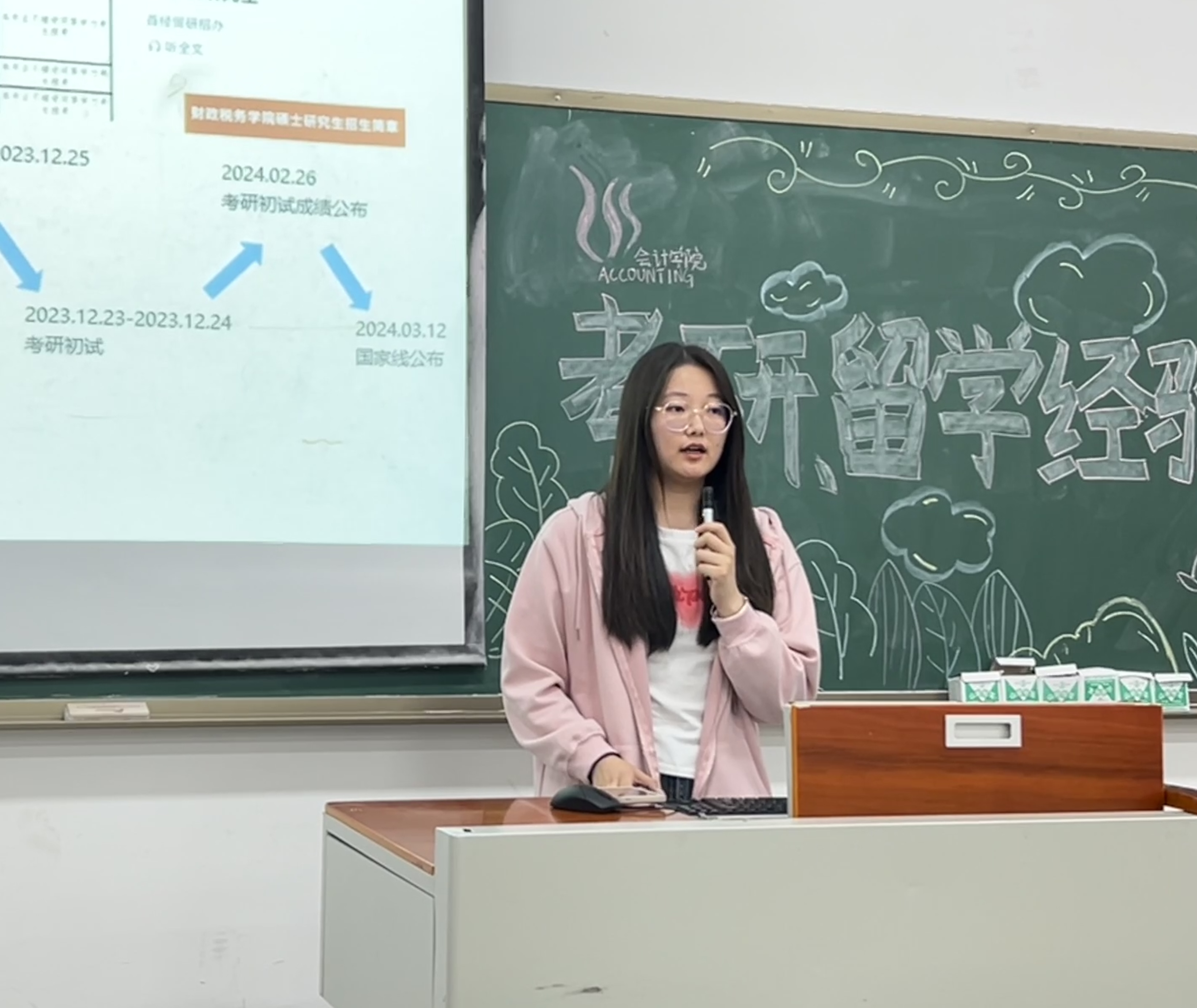 为帮助考研学子明确考研目标和未来发展规划,发挥朋辈引领作用,4月24日,我校会计学院在教学楼1406教室开展考研、留学经验分享会,会计学院部分师生代表参与。