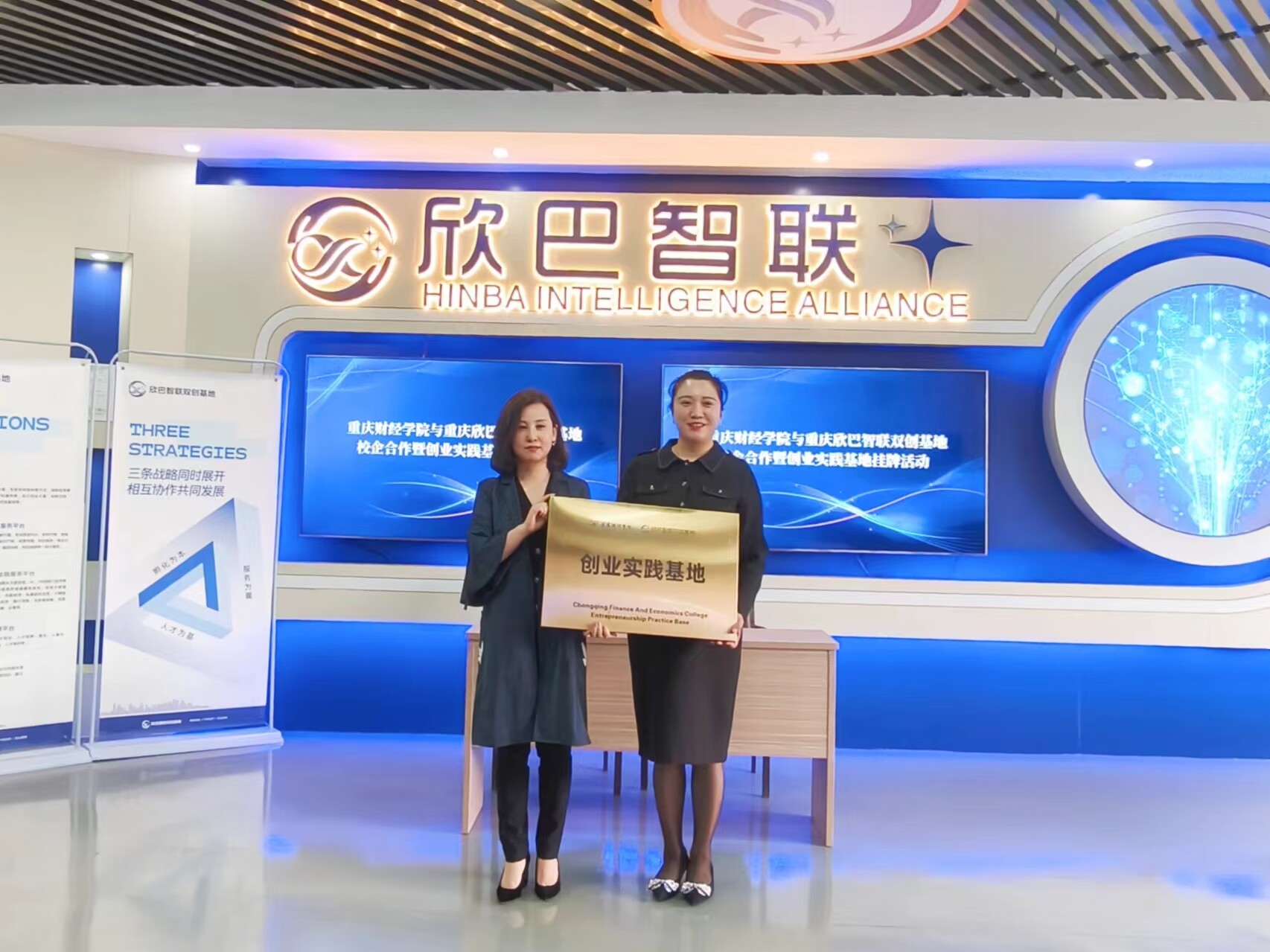 授牌仪式上,曾真院长与欣巴智联双创基地负责人签订了靠谱的电子游戏平台官网双创实践基地战略合作协议书,并代表学校给欣巴智联双创基地进行授牌。