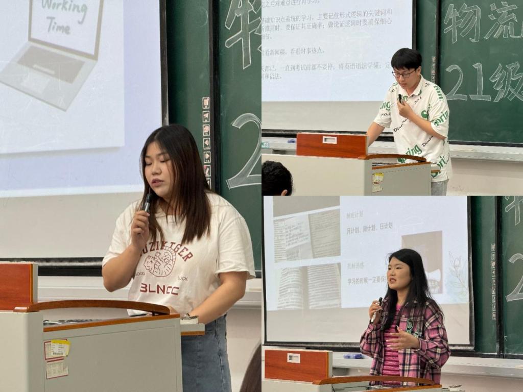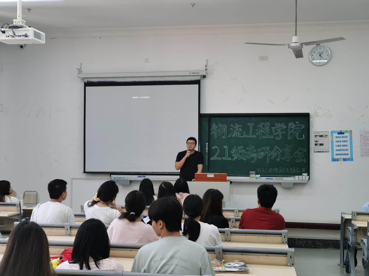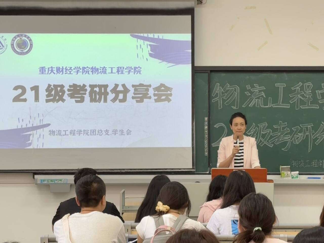 大会伊始,党总支副书记王艺燃介绍了物流工程学院20级学子考研情况,并对学院13名优秀学子顺利上岸表示祝贺,同时,鼓励21级考研同学坚定信念,勇往直前。考上重庆交通大学的专升本朱霜婷同学用幽默风趣的语言分享了自己关于“院校选择”、“备考经验”两方面的认识;考上重庆工商大学的袁艺航同学从考研的难题出发为同学们讲解,深入浅出地与大家分享了他的亲身体会;跨专业考上四川大学马克思主义理论专业的杨柳同学则以初始备考为主,讲述了考研刷题和备考环境需要重点关注的问题,向同学们分享了如何选择合适的学习方法、学习平台。