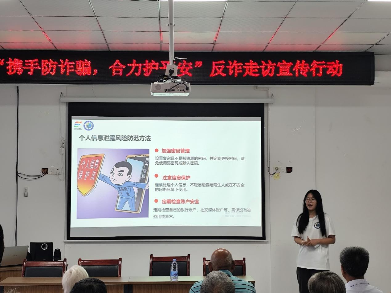 活动过程中,反诈宣传主讲人简运星详细介绍了各类电信网络诈骗的手段和防范方法,并结合近期发生的真实案例,如网络贷款诈骗、刷单返利诈骗等,向老人们剖析诈骗分子的作案手法以及特点,提醒其要时刻保持警惕。同时,通过开展互动小游戏,向老人们提出关于诈骗宣讲内容相关问题并邀请他们进行有奖问答,活动现场居民热情高涨、积极参与。此外,宣传人员还鼓励大家积极向身边的亲朋好友宣传反诈知识,共同营造全民反诈的浓厚氛围。