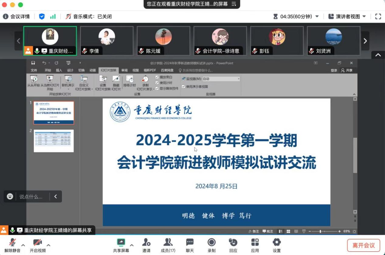 2024-2025学年第一学期会计学院新进教师模拟试讲交流会顺利举行