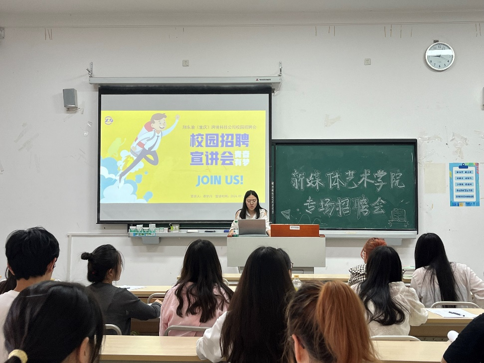 为深入贯彻落实党中央、国务院关于促进高校毕业生就业的决策部署,进一步深化产教融合、推进校企合作,拓宽就业渠道。2024年9月27日,新媒体艺术学院邀请到翔东渝(重庆)跨境科技公司在教学楼318教室举办了专场招聘会,此次活动旨在为学生提供与行业接轨的机会,促进就业与实习。