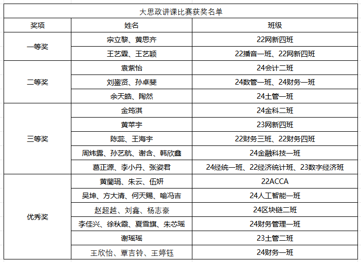根据评委评分,最终获奖名单如下: