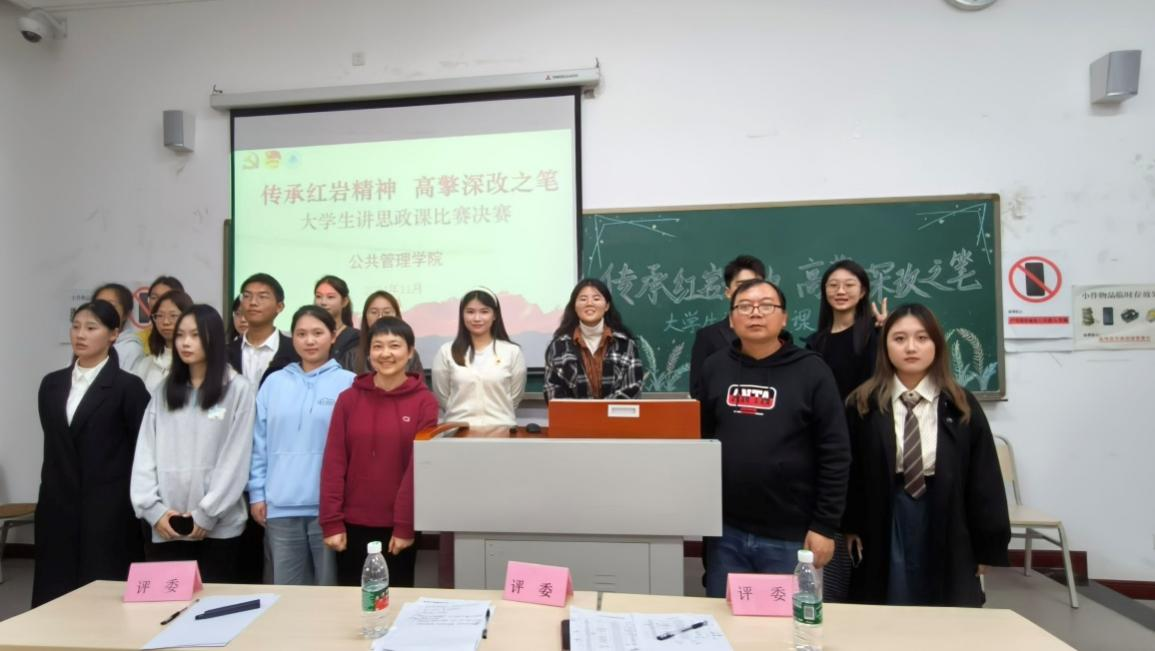 为深入学习党的二十届三中全会精神,传承与弘扬红岩精神,推动我校“大思政课”建设,11月12日中午,由马克思学院主办、公共管理学院承办的第十二届“大思政课”铸魂育人活动之“传承红岩精神,高擎深改之笔” 大学生讲思政课比赛决赛在教学楼1504教室举行。陈开江老师、高雪莲老师、阳圆老师担任评委。