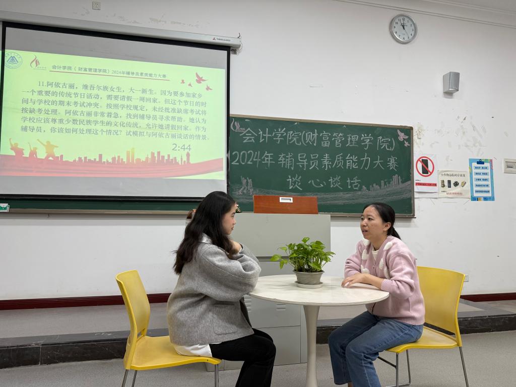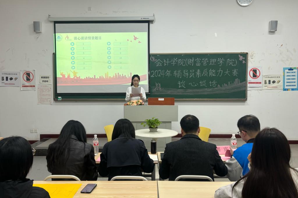 为全面提升辅导员的专业素养和工作能力,推动辅导员队伍专业化、职业化建设纵深发展。11月7日,我校会计学院(财富管理学院)成功举办2024年辅导员素质能力大赛(学校初赛),党总支书记姚转花、党总支副书记冉光波担任大赛评委,共12名专职辅导员参赛。