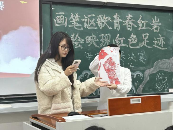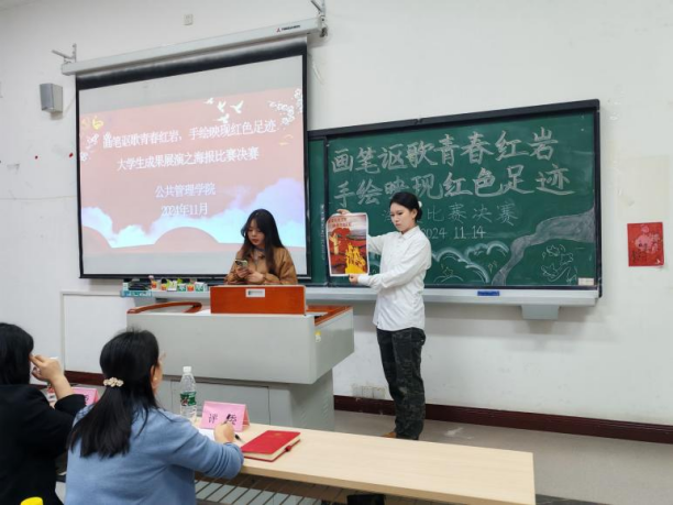 为深入学习党的二十届三中全会精神,传承与弘扬红岩精神,推动我校思想政治教育创新,11月14日中午,由马克思学院主办、公共管理学院承办的第十二届“大思政课”铸魂育人活动之“画笔讴歌青春红岩,手绘映现红色足迹”的大学生成果展演海报比赛决赛在教学楼1308教室举行。甘雪梅老师、刘璐静老师、阳圆老师担任本次比赛评委。