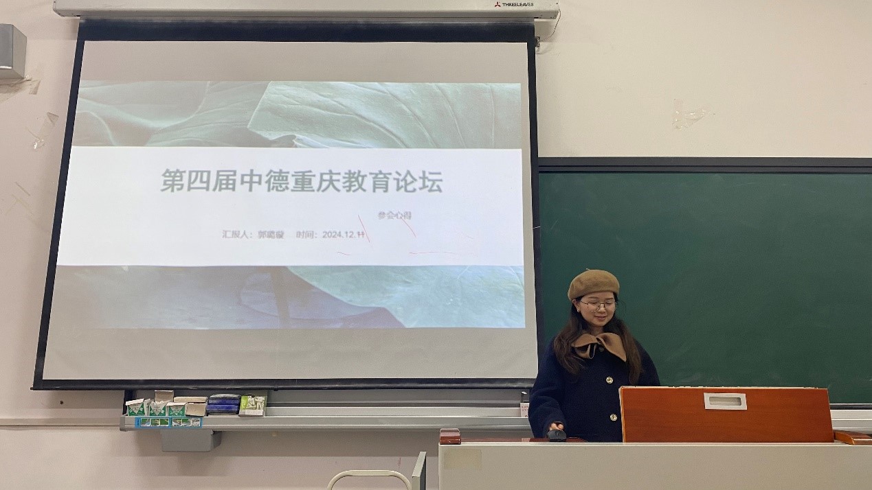 专职教师郭璐璇分享了在“第四届中德重庆教育论坛”上的收获,从“规范发展”、“合格评估”等方面展开详细论述。