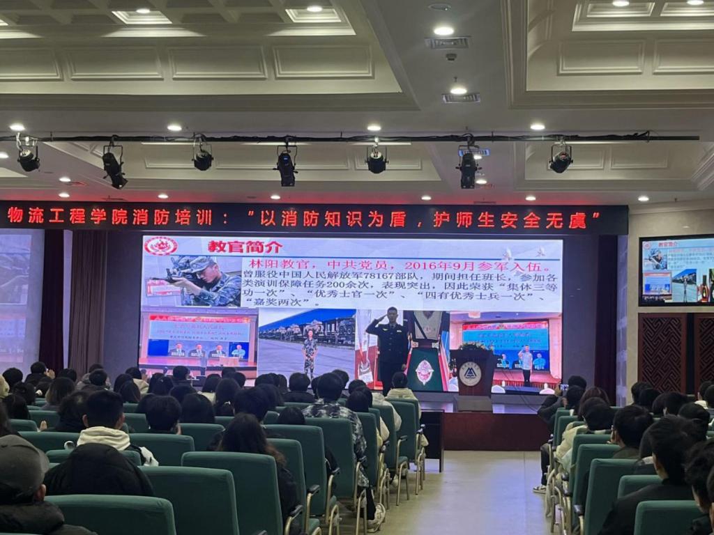 冬季来临,随着天气愈发寒冷,校园里用电取暖需求增加,火灾隐患也不容小觑。为全面提升大家的消防安全意识与应急能力,12月16日中午,我校物流工程学院联合利民消防宣传中心在教学楼学术报告厅开展“消防知识为盾,护师生安全无虞”讲座。此次讲座邀请利民消防宣传中心林阳作为宣讲人进行宣讲,物流工程学院党总支副书记王艺燃,物流工程学院团总支书记杨惠琳,专职辅导员龚越、郑思迪、冯海涛、徐凯作为嘉宾出席此次讲座,物流工程学院全体寝室长参加培训。