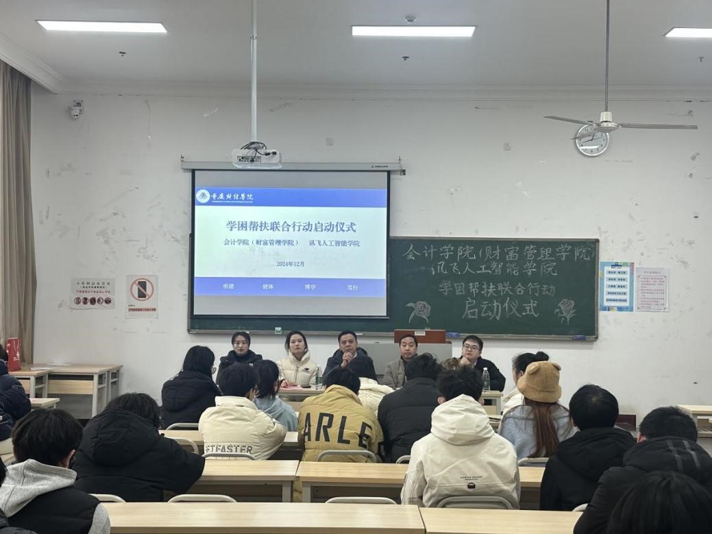 为了进一步加强学风建设,帮助学业困难学生顺利度过学习难关, 12月17日中午,我校讯飞人工智能学院在教学楼1414教室举行与会计学院(财富管理学院)学困帮扶联合行动启动仪式,讯飞人工智能学院党总支书记乐晓勇、会计学院(财富管理学院)党总支副书记冉光波、会计学院(财富管理学院)学团办公室主任陈晨以及讯飞人工智能学院专职辅导员蔡霞、杨艳参与本次活动。此次活动旨在通过帮扶行动,搭建起学生之间互相学习、互相帮助的桥梁,共同营造良好的学习氛围。