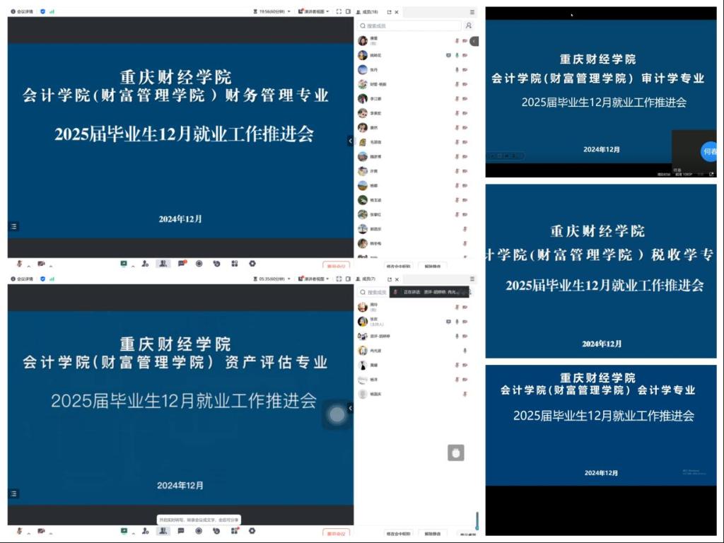 在三级联动机制的引领下,会计学、审计学、税收学、财务管理、资产评估专业迅速行动,2024年12月,由学院各领导联系相关专业先后召开了就业工作推进会,会上,由辅导员和实习指导教师分别汇报学生的就业情况、存在问题及下一步改进思路,共同商讨如何更加精准、更加高效地推进就业工作,推动就业工作取得新进展。