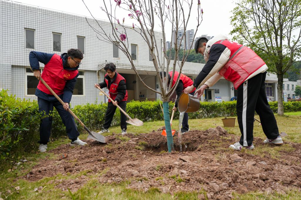 活动现场,30余名师生与企业青年骨干组成联合行动队,在专业技术指导下完成整地挖坑、扶苗培土、灌溉养护等全流程作业,累计栽种玉兰花、红枫等乡土树种20余株。