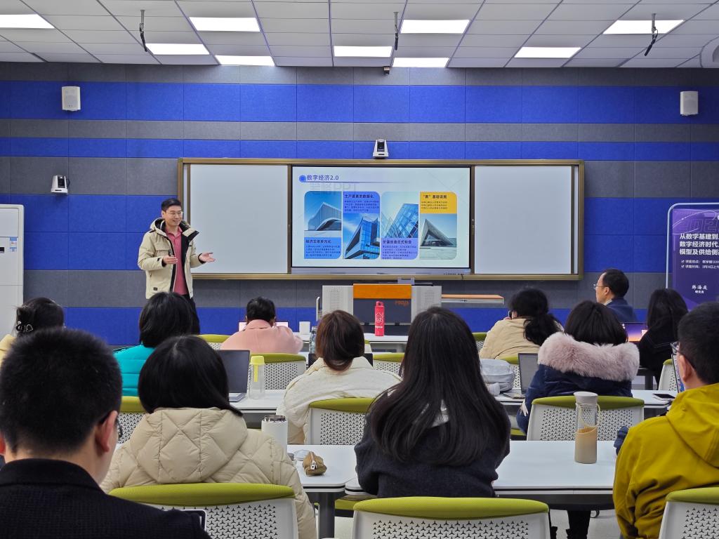 第一阶段会议,韩海庭研究员以“从数字基建到人才基建:数字经济时代人力资本模型及供给侧改革”为主题,基于理论认识和行业实践,从数字经济和数字教育两个核心维度切入,阐释了数字经济领域的理论研究框架与前沿议题。并结合当下大数据、人工智能等新技术在教育领域深入应用,系统剖析了数字经济时代人才培养的核心要素,着重强调了要逐步增强人才的数字伦理意识及提高数字素养水平。在互动交流环节中,参会教师围绕学术研究的前沿方向、课程体系的优化设置、教学环节的科学设计以及学生的就业导向等多个方面,与韩海庭研究员进行深入讨论,形成了具有前瞻性和实操性的见解与建议。
