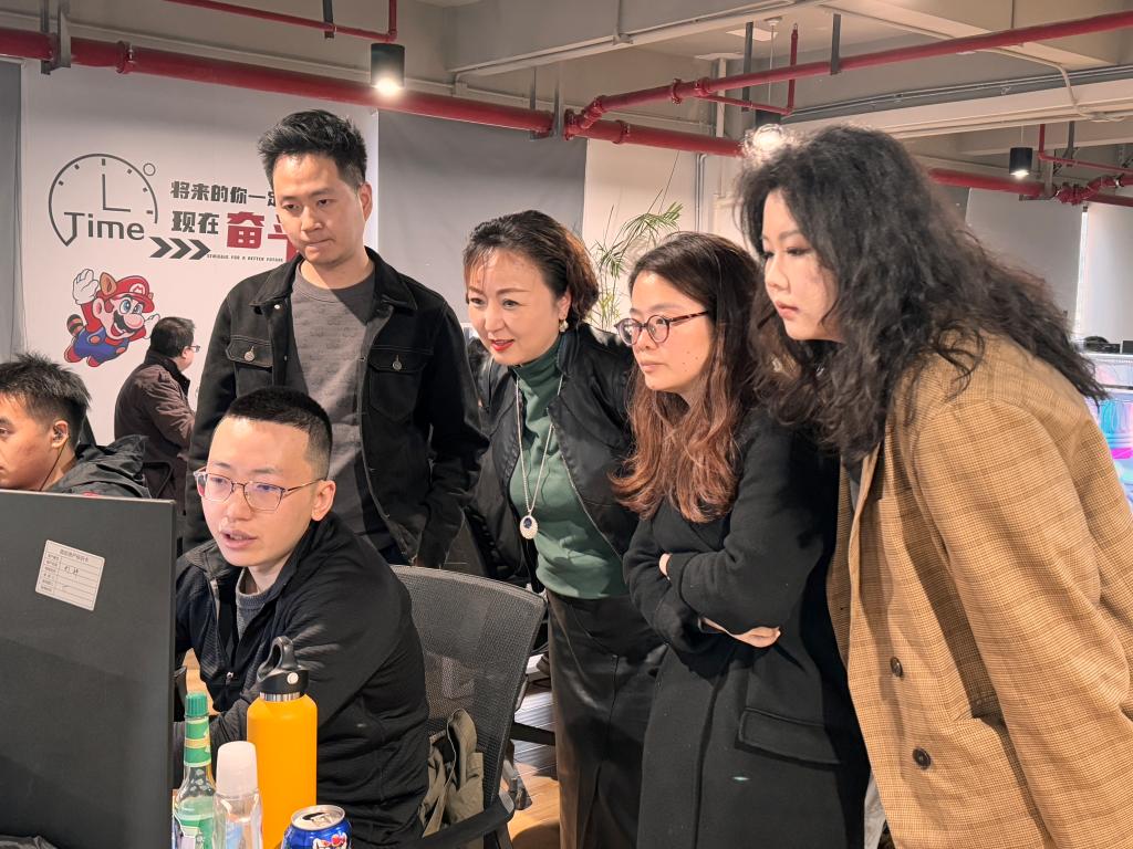 交流会后,学院一行实地观摩了公司员工的项目设计场景,企业骨干成员从技术层面详细讲解了项目实操流程,为学院培养学生的专业能力提供了具象化案例。