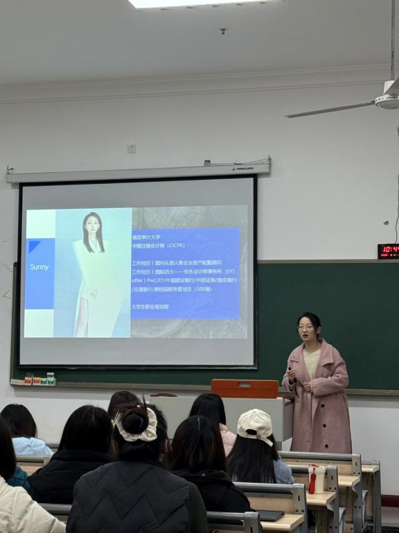 来自江苏财鑫培训有限公司的沙燕老师为税收专业以及ACCA方向班开展简历指导。她指出,进入名企的简历必备要素就是专业能力加上综合能力。她建议同学们立足当下,规划未来,需要具备更强的职业规划意识和适应能力。