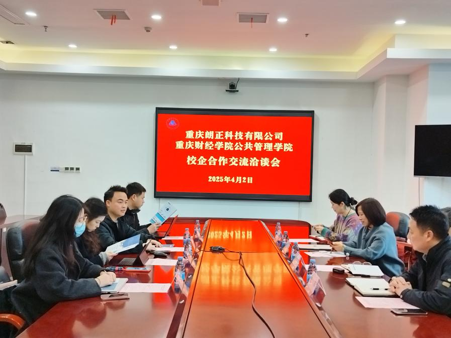 参加会议的还有重庆朗正科技有限公司商务部贺慧、施东,重庆大学机械学院教授庞晓平及公共管理学院党总支书记罗婷婷、土地资源管理系系主任王福海、学团办主任阳圆。