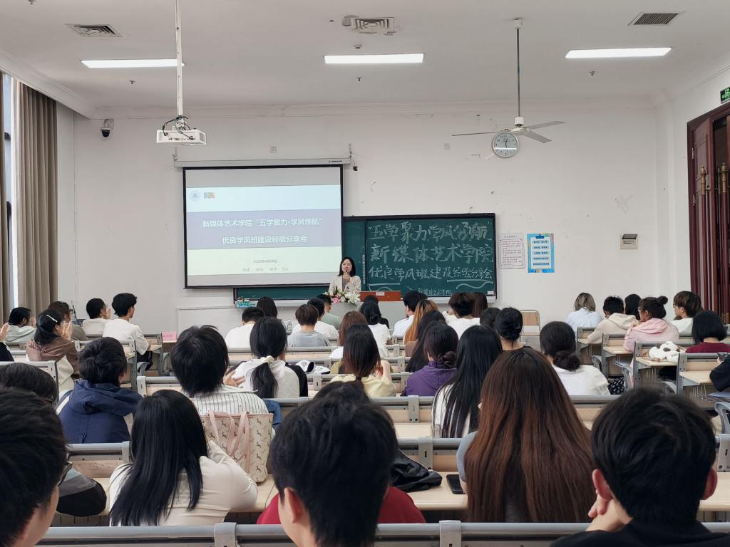 4月28日,我校新媒体艺术学院在教学楼1301教室召开“五学聚力·学风领航”优良学风班建设经验分享会。学院党总支书记甘雪梅、相关教师及学生代表共80余人参加。活动聚焦“标杆示范-经验共享-协同提升”三个环节,旨在营造良好的学风建设氛围。