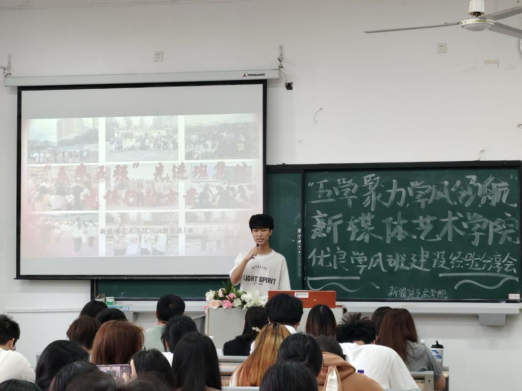会上,学院学团办主任朱明明解读了学风建设评选标准,对学院课堂出勤率等数据作了通报。24级会展经济与管理一班、23级网新一班、22级网新三班的优秀班级代表分别从班级体系建设、课程思政创新以及市级先进班集体创建经验等方面进行了交流分享。