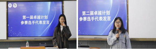 经验传承,激发参赛斗志。首届“卓越计划”参赛学生代表罗菲利亚结合自身参赛经历,分享了深刻的感悟。第二届参赛选手代表向芝冰紧密结合公共管理学院在守护健康领域的专业特性,强调了专业知识在其中起到的关键作用。