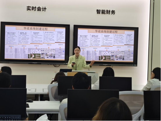 会上,谢怀涵学姐以“X奶茶公司固定资产管理系统”为例,分享她从选题到系统开发的毕设全过程。她详细地介绍了如何通过实地调研和数据整合完成系统设计,并强调吃苦耐劳、创新变革和信息交换三大思维的重要性。此外,她还鼓励大家积极参加专业比赛提升自身综合能力,为毕业设计奠定基础。