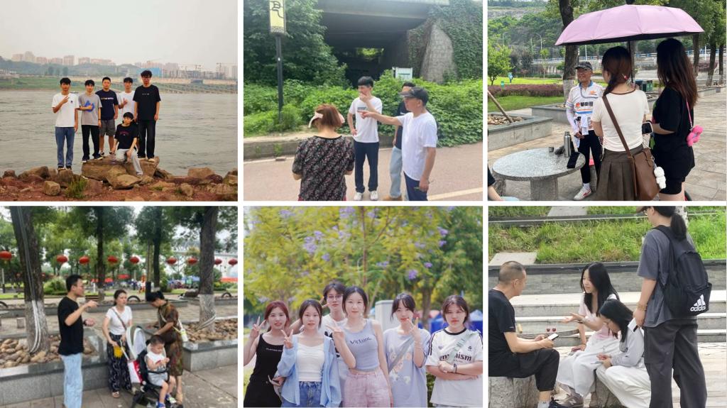 校外热点场景聚焦。以重庆 “两江四岸” 滨江景观带的巴南湿地公园为实践对象,该区域作为全国关注的城市景观更新案例,学生通过实地走访、游客访谈及管理方沟通,重点调研湿地生态保护、游憩设施布局、文化元素融入等现状,形成10 余份调研记录与概念设计资料。