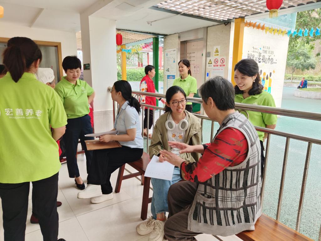 调研过程中,学院一行与入住老人亲切交流,倾听其生活体验与改进建议。学院一行还与公寓老人们热情互动,唠家常、唱老歌,现场气氛热烈。