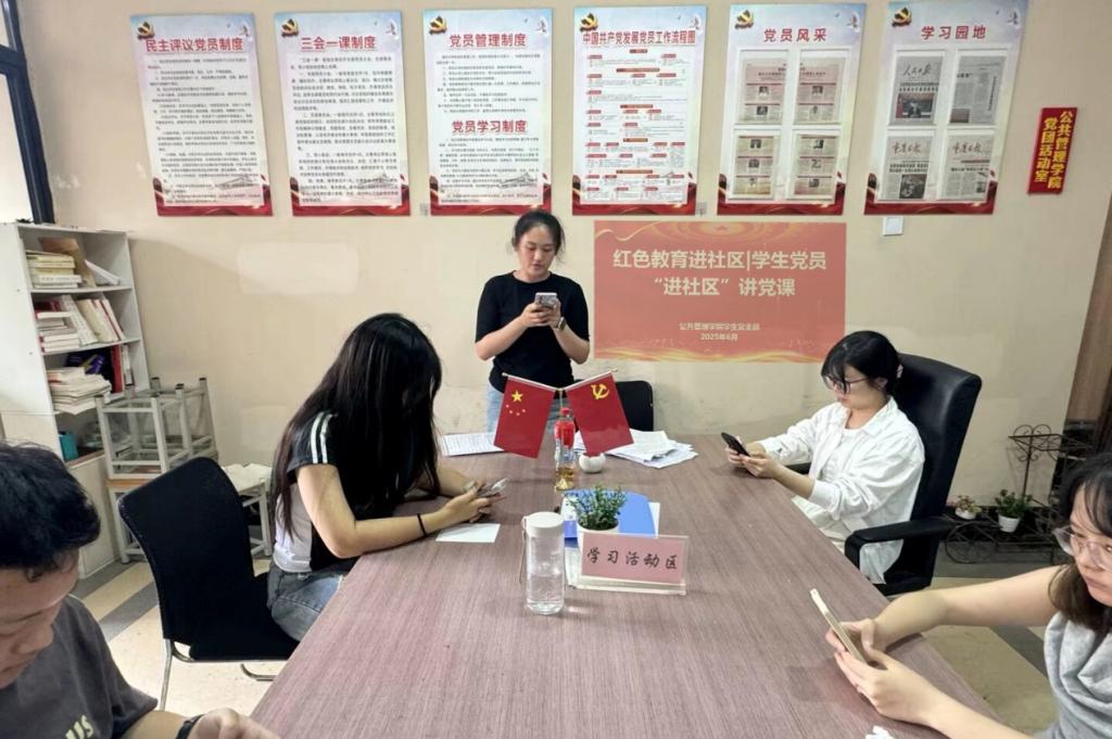 6月9日中午,我校公共管理学院学生社区党支部在七栋党团活动室举办“红色教育进社区”活动。袁瑞同志以“传承红色基因,担当时代使命”为主题讲授党课,引导学生党员们传承红色基因,担当时代使命,落实党性教育与社区育人深度融合。