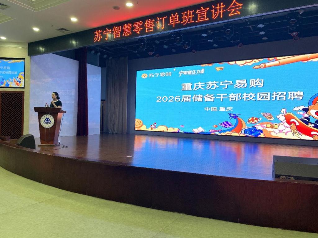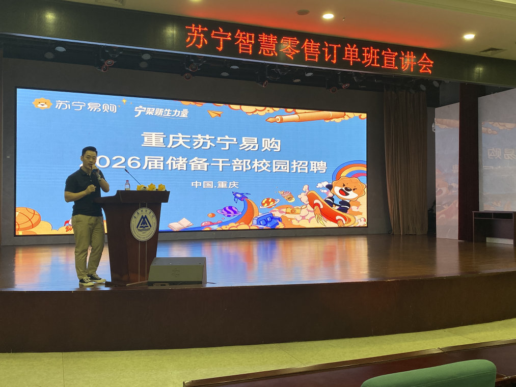 为进一步深化校企合作,促进学生高质量就业,6月11日,重庆苏宁易购走进物流工程学院成功举办2026届电子商务专业“苏宁智慧零售订单班”专题宣讲会。2026届电子商务专业全体学生及相关教师代表参加。重庆苏宁易购人力资源部王代文经理,学院党总支副书记王艺燃,电子商务专业专职教师等出席。