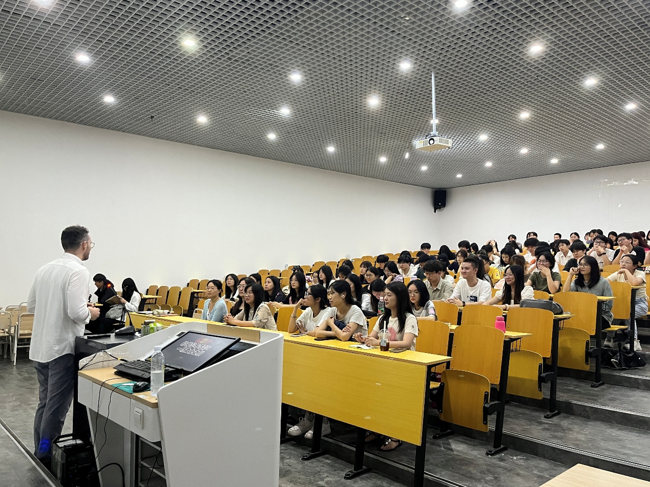讲座中,林海以生动的语言、丰富的图片和音乐素材,围绕“西班牙的历史遗产、语言文学、艺术音乐到传统节日与民俗风情”展开讲解,让在场师生深刻感受到西班牙文化的独特魅力与深厚底蕴。讲座现场气氛热烈,学生们在沉浸式体验中,进一步理解了文化多样性的价值与意义。