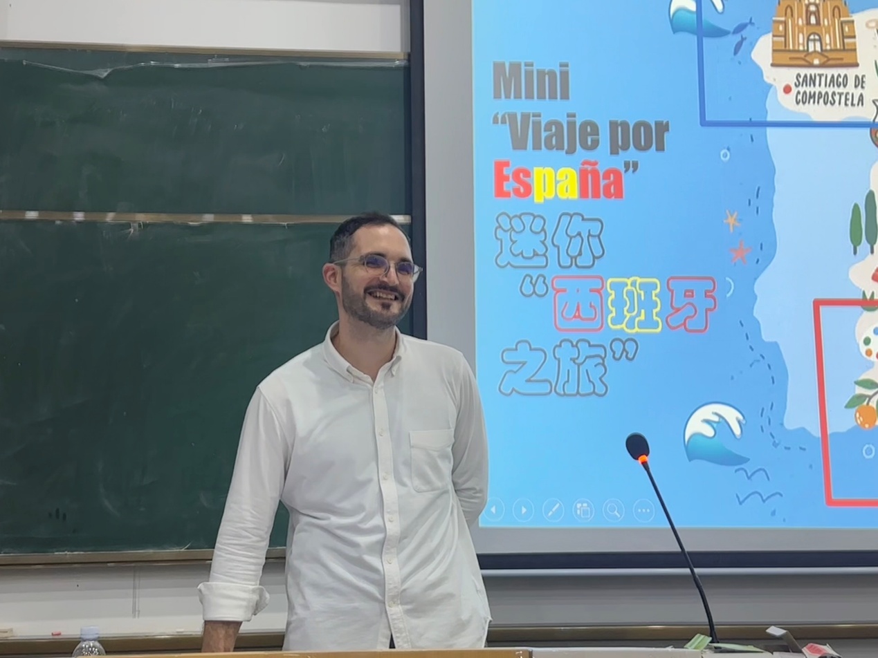 为拓展学生国际视野,增强跨文化交流意识,6月11日,我校国际商学院在教学楼1126阶梯教室举办“西班牙的神秘与奇迹:一场文化之旅”文化讲座,我校西班牙语外籍教师林海(Isaac Martinez Banovio)应邀担任主讲人。本次活动吸引了众多对语言文化感兴趣的师生参与。