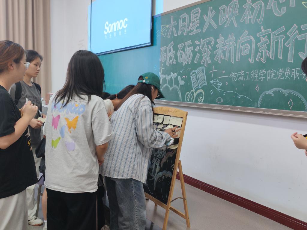 “笔抒忠诚”心得撰写环节,采用了“三思三写”的模式。首先,学生党员们将对红色物流史学习的三点深刻体会写在便签纸上。接着,他们以优秀党员的标准为镜,深入剖析自身不足,列出了需要完善的三个方面。最后,每位党员结合自身实际制定了三项切实可行的行动策略。