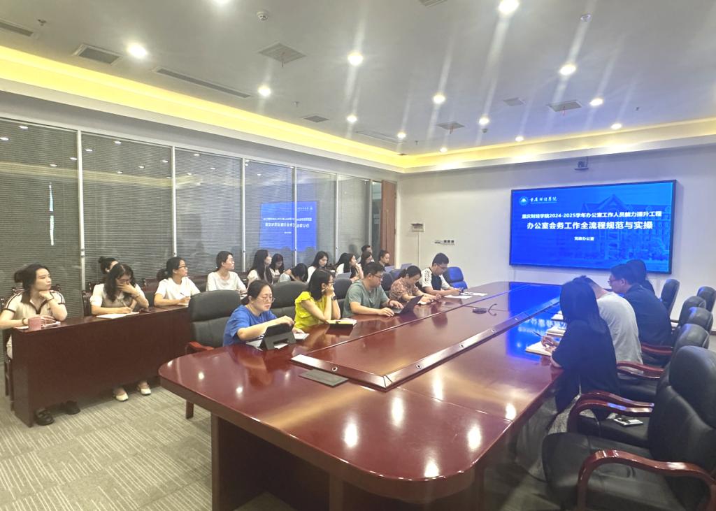 为进一步推动深入贯彻中央八项规定精神学习教育走深走实,6月17日,在前期全覆盖开展二级学院调研的基础上,结合学校全员素质能力提升行动计划部署,我校党政办公室举办办公室人员能力提升专题培训会,坚持简约务实,对照负面清单,聚焦实际问题,针对性交流分享,切实提升办公系统工作规范化水平和管理效能。