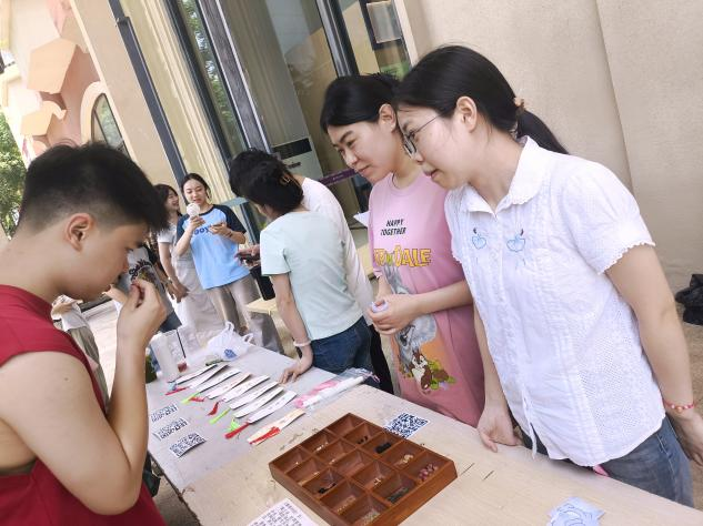 活动面向全校师生,设置识药挑战、中医养生问答、养生茶、体质测试、功法习练等七大沉浸式体验区,吸引数百人参与体验。识药辨方区,15种中药标本整齐摆放,同学们凑近闻香、触摸感受,认真辨识。茶饮体验区,体验养生茶(酸梅汤、薏苡仁茶、生脉饮等)的配方、试饮。功法教学区,带领太极和八段锦的一招一式。艾灸体验区,亲身体验中医的独特魅力。