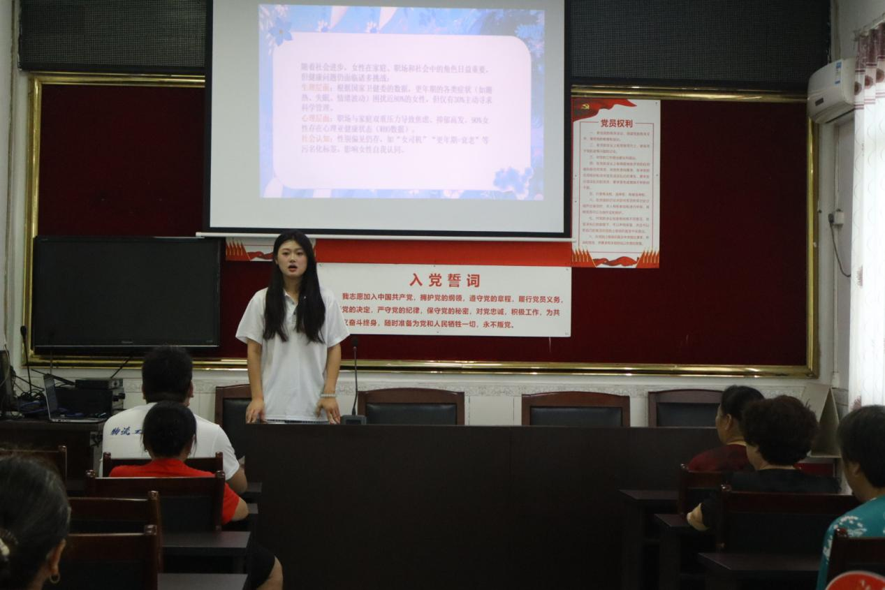 讲座开场,“物小志”志愿服务队伍成员通过生动案例与通俗易懂的语言,围绕中老年女性常见的心理困扰展开讲解。团队成员结合心理学知识,细致分析了更年期情绪波动、子女离家后孤独感、代际沟通矛盾等问题成因,分享了情绪管理小技巧,用“情绪日记”记录内心的感受,同时以职场压力、家庭矛盾等真实案例为切入点,深入了解阿姨们的思考自身心理状态,现场互动氛围热烈。