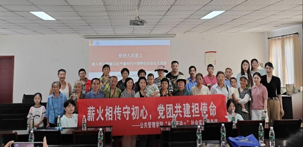 校地共建搭平台,理论下沉强引领。公共管理学院“乡野跃动π”实践团以及马克思主义学院教师与干湾村村委紧密配合,重点聚焦深入贯彻习近平新时代中国特色社会主义思想,把村里的党群服务中心变成了这次理论宣讲的“大课堂”。